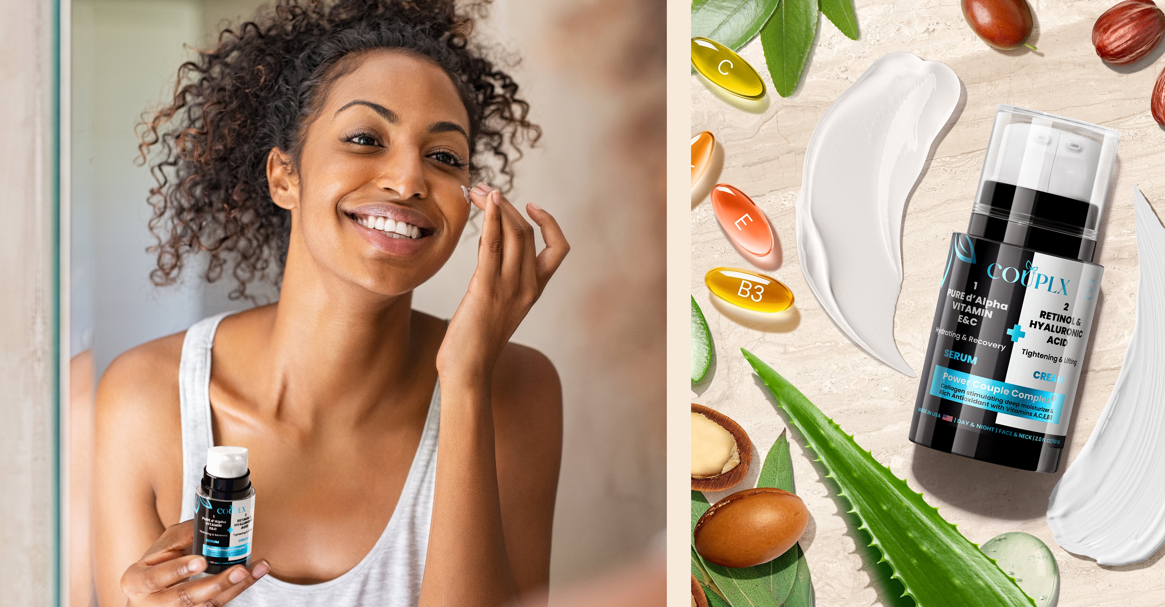 “Enjoy an innovative product, a face cream and serum in one bottle, safe and
